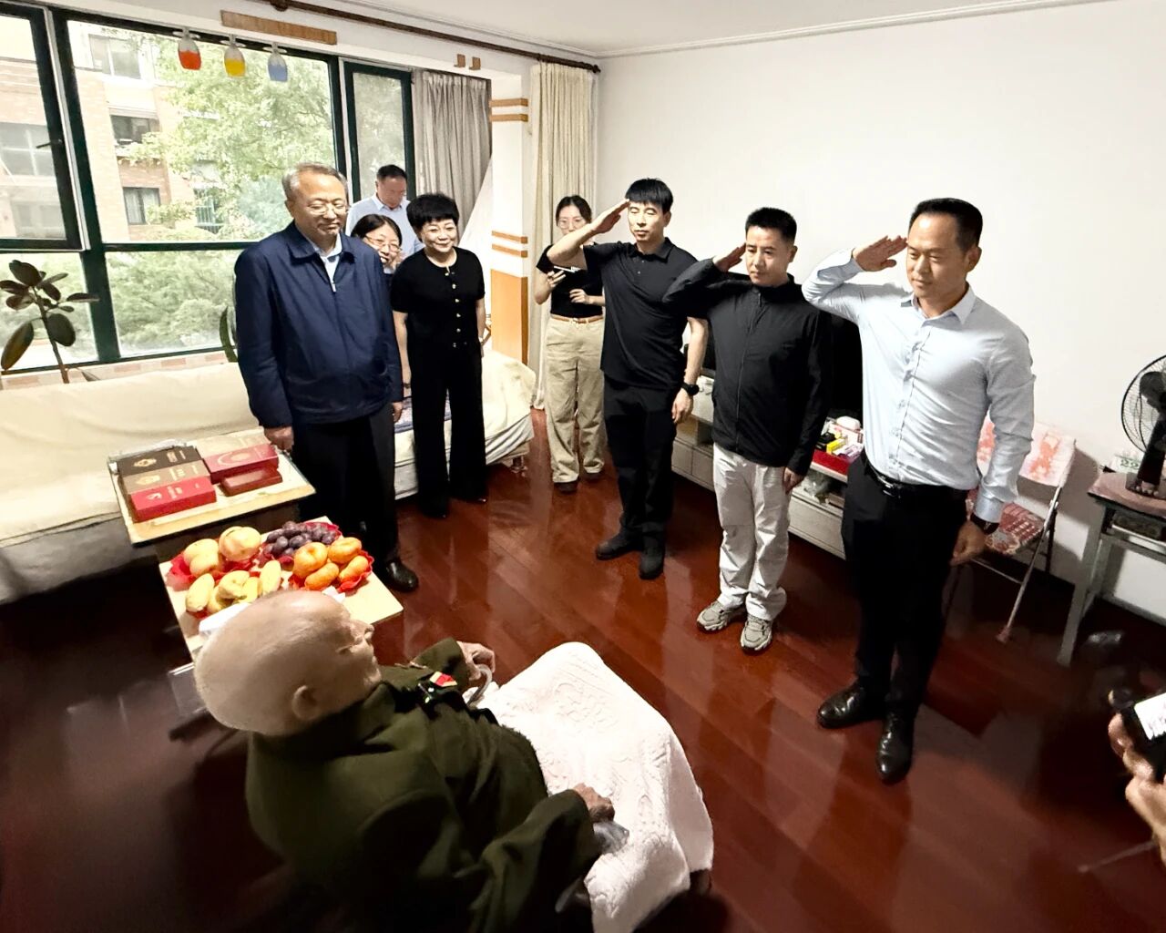 慰問過程中,韓宗森老同志與家人深情回顧了當年的革命歷程,特別是抗戰(zhàn)時期的崢嶸歲月和英勇事跡?,F(xiàn)場氣氛熱烈,韓老還和大家一起高唱《中國人民志愿軍戰(zhàn)歌》。雖已年過九旬,他依然思維敏捷、聲音洪亮、精神矍鑠。在場的工作人員和退役軍人無不為之動容,自發(fā)地向韓老行莊嚴的軍禮,表達由衷的敬意。